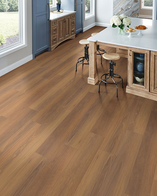 As spending time at home becomes more popular and ever-present, it’s important to have flooring that can handle the common mishaps of daily life. Thankfully, as flooring technology evolves, so do the impressive features that are available. We predict that durable, waterproof vinyl styles will be a product choice that shouldn’t be missed in 2021, as these styles focus on the features that families need most: water-resistance, durability, and a long-lasting, timeless appearance. Pictured below is just one of the many durable, waterproof vinyl styles on the market today that is sure to delight homes in 2021. Its reddish hue, striking wood-look, and wide 9-inch planks will not only dazzle with their convenient features but also with their elegant appearance that will complement any design style.
